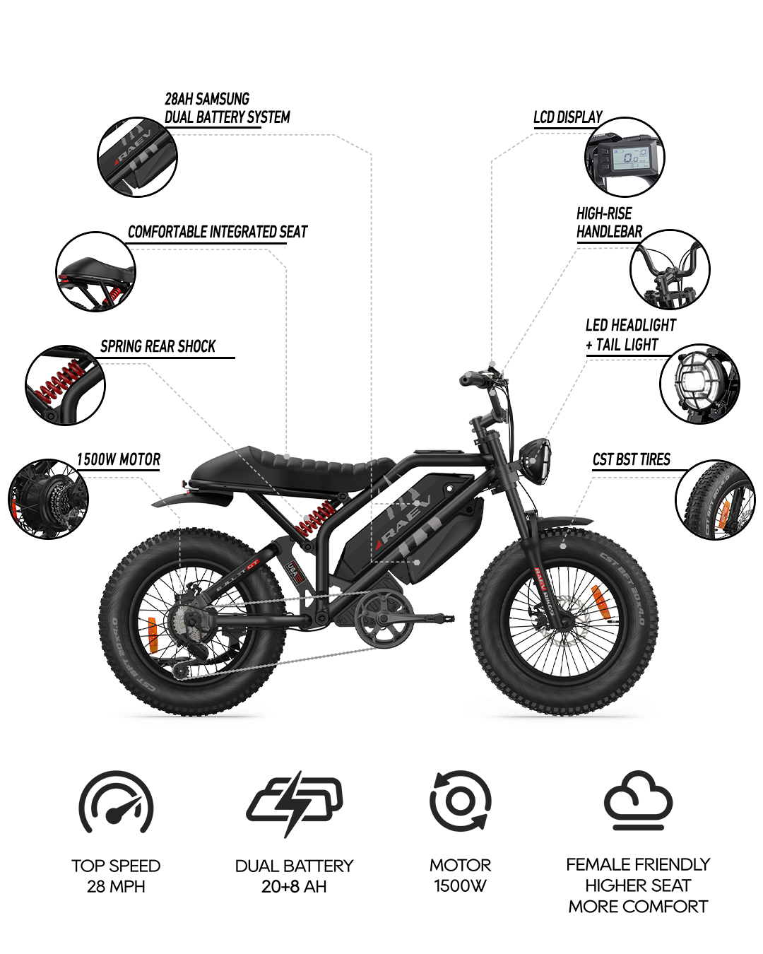 RAEV Bikes ships from the United States and offers fast, free delivery. After placing your order, you will receive an order confirmation email. Once your item has shipped, we will send you a tracking email with your tracking number. In-stock orders usually ship within 1 to 2 business days, with delivery taking 2 to 6 days depending on the destination and carrier efficiency. Pre-order items, however, will ship once the new batch arrives at our warehouse. Please note that shipping times may vary due to factors such as weather, logistics delays, or regional holidays. For any other inquiries, please contact us at support@raevbikes.com.