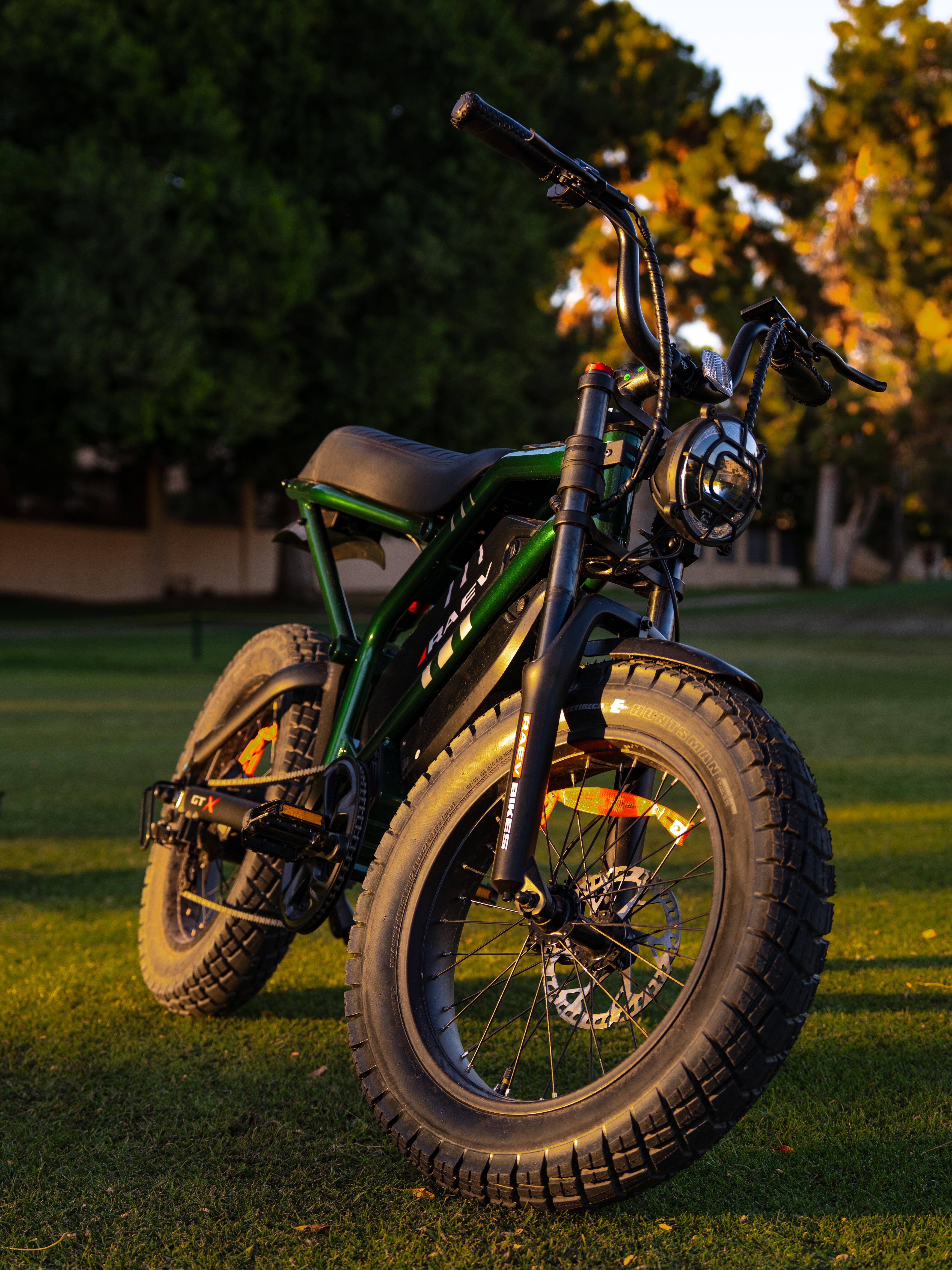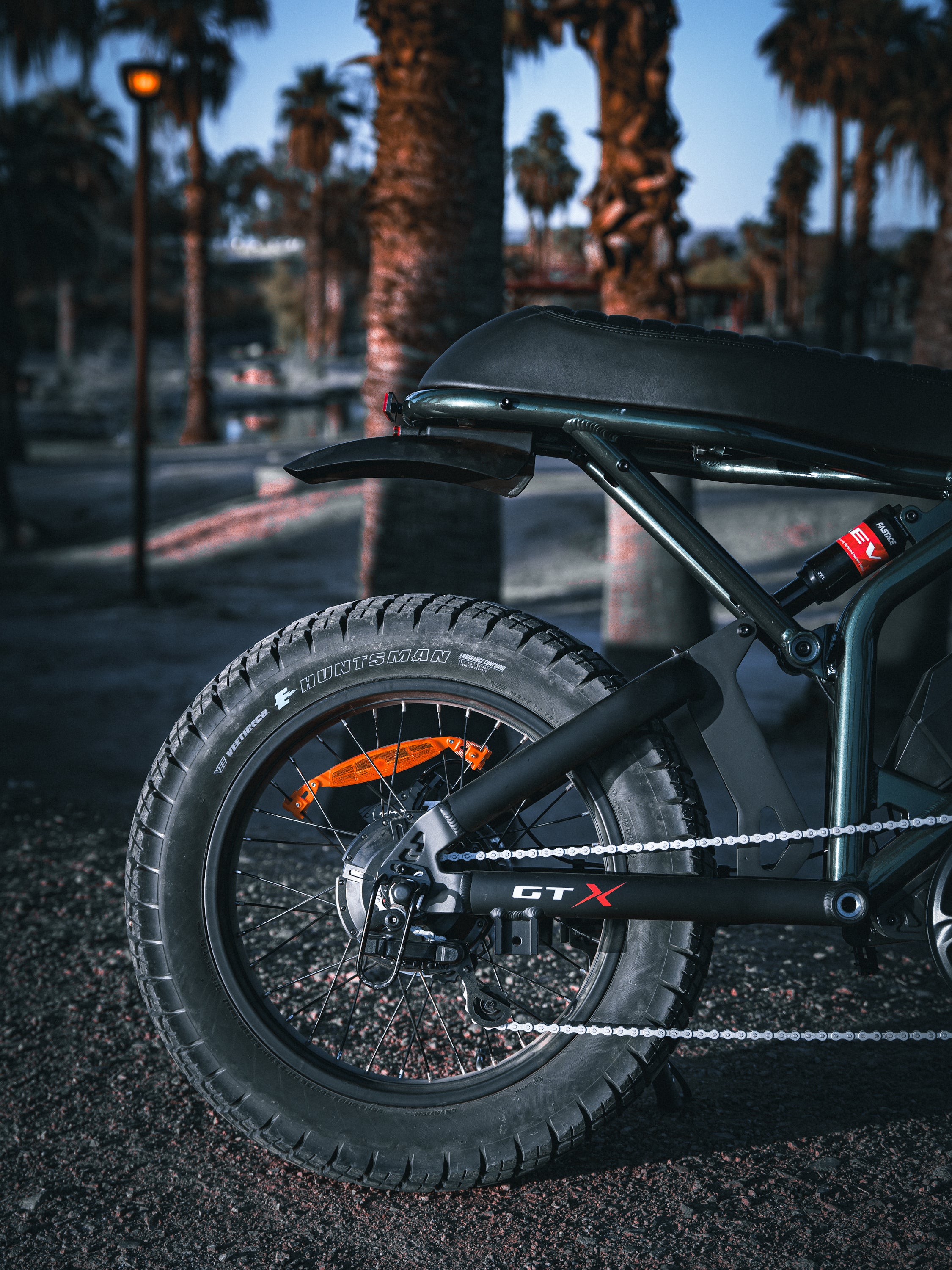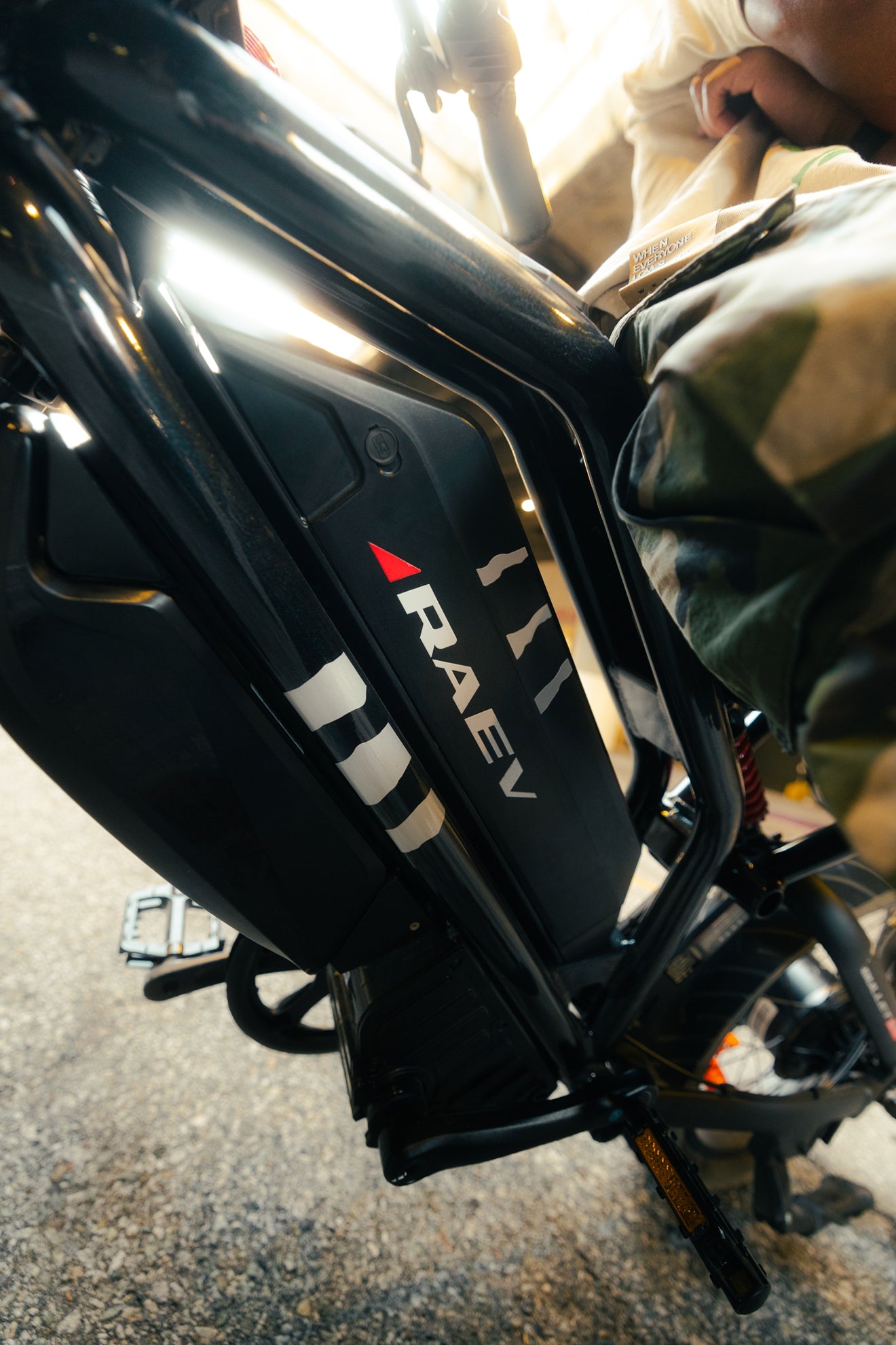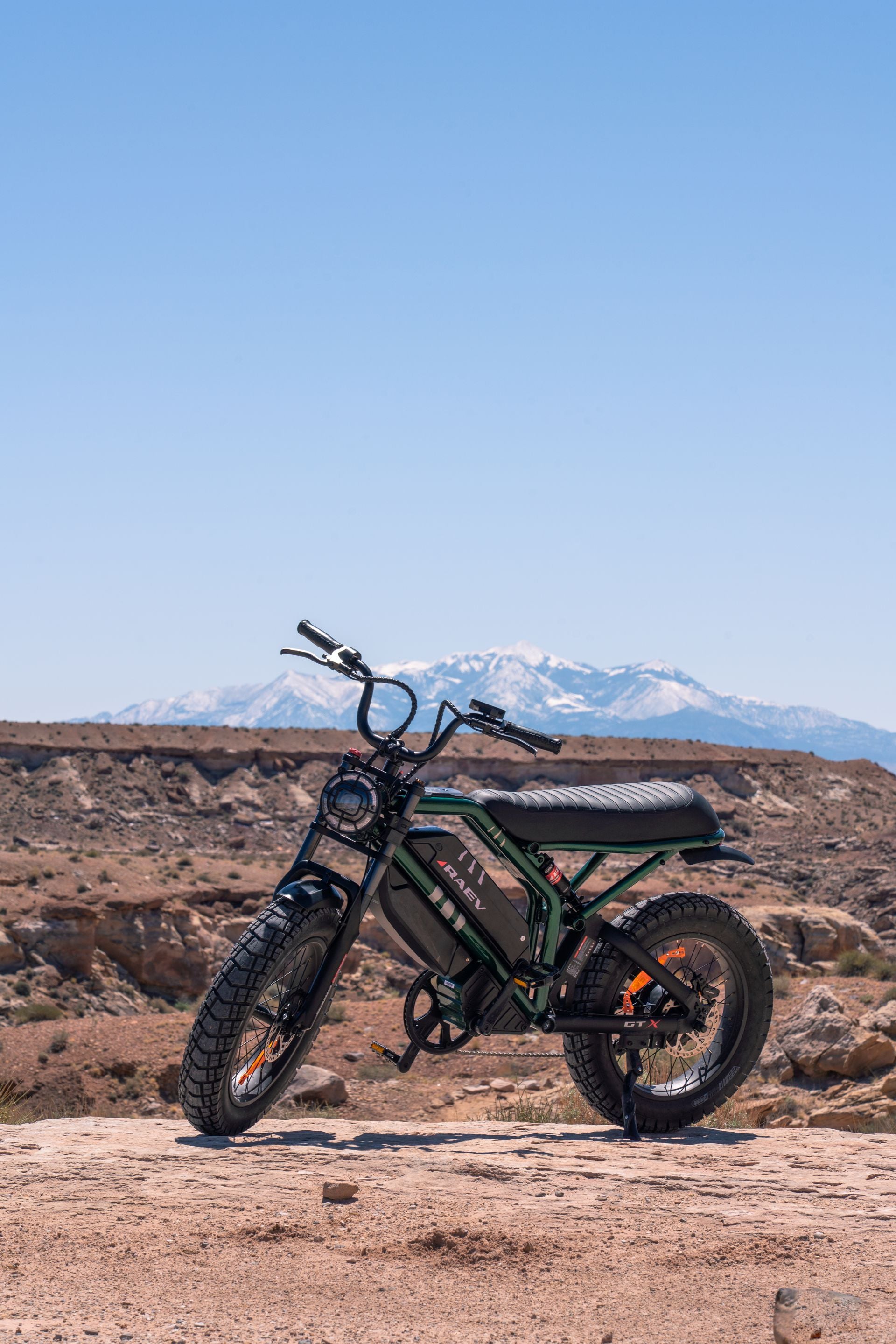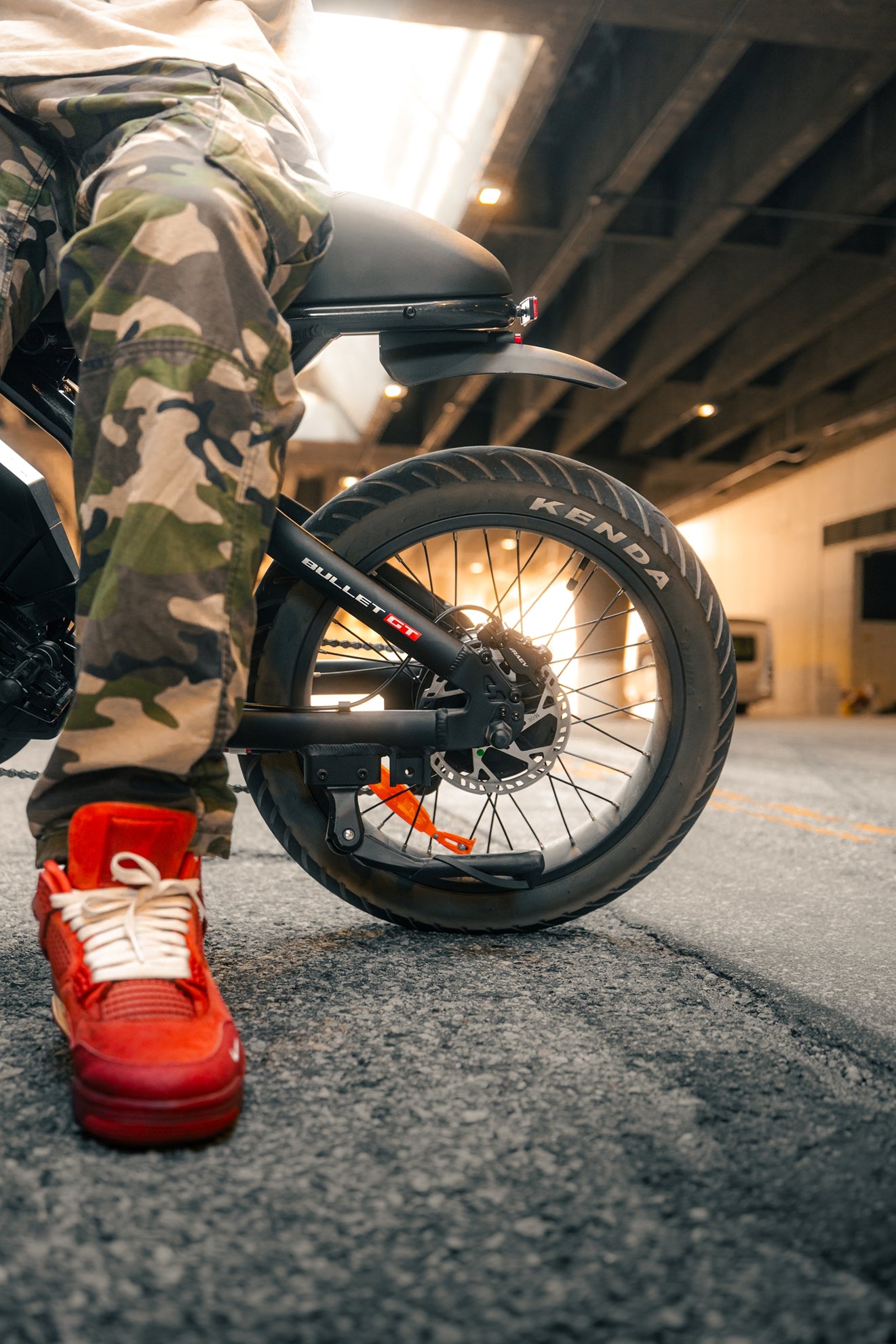 Dual-battery total 33Ah with Samsung 21700 cells. Up to 100+ miles PAS and 50+ miles throttle. Folding pegs now standard for easy two up rides.